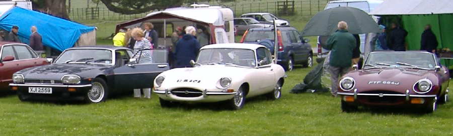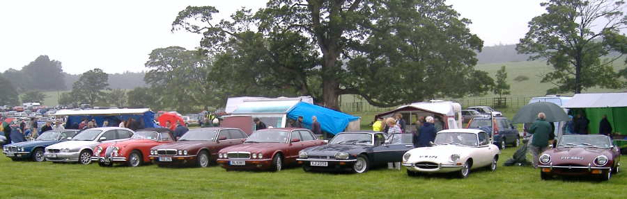 Arising on Sunday morning the day was indeed calmer and very pleasant if a little overcast, and with this in mind nine cars met at the Burton Services to commence their day out to Raby Castle. Led by Organiser John Vero, eight Jaguars and an MG commenced up the motorway on our drive to Raby Castle driving through Kirkby Steven and Brough, before winding up and over the Pennines. At this point we encountered some mist, followed by some drizzle, which eventually turned into rain. On our arrival at Raby the rain was still very persistent, although it had not put off many exhibitors, and indeed very many members of the public who had come to see the cars.